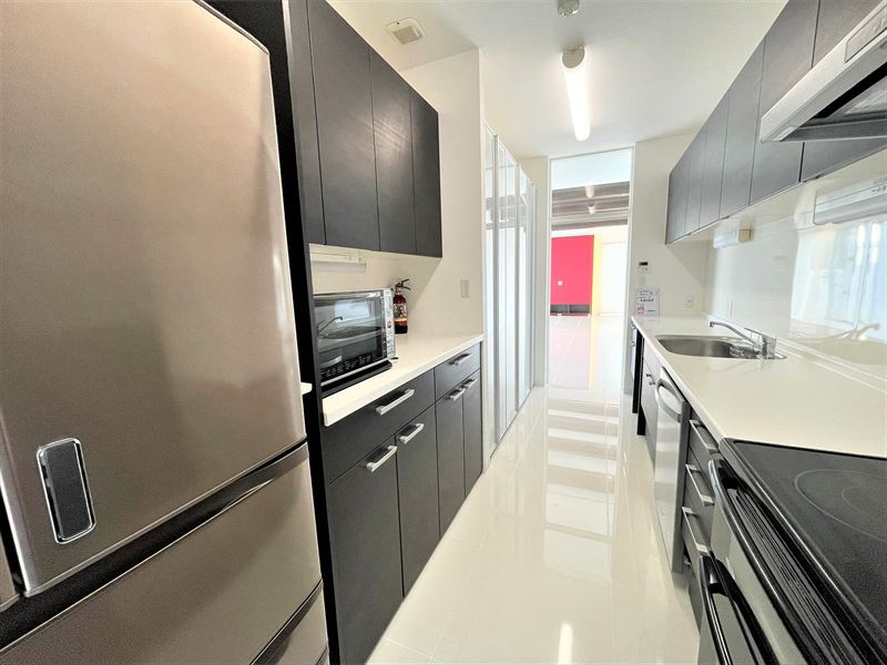 Large kitchen with an abundance of storage space.